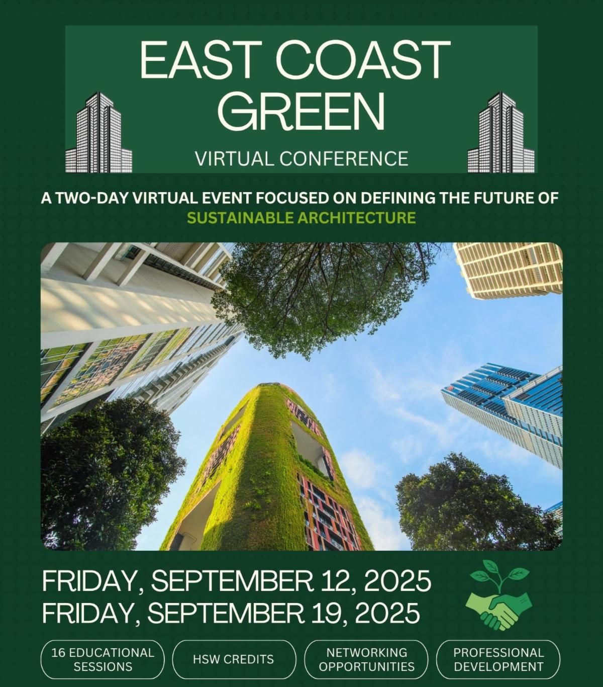 Hear from leading voices in sustainability who are redefining what’s possible in the built environment. Whether you’re looking to elevate your expertise or stay ahead of green building trends, East Coast Green Virtual is the can’t-miss event of the season.