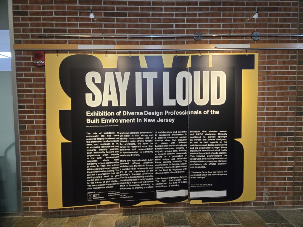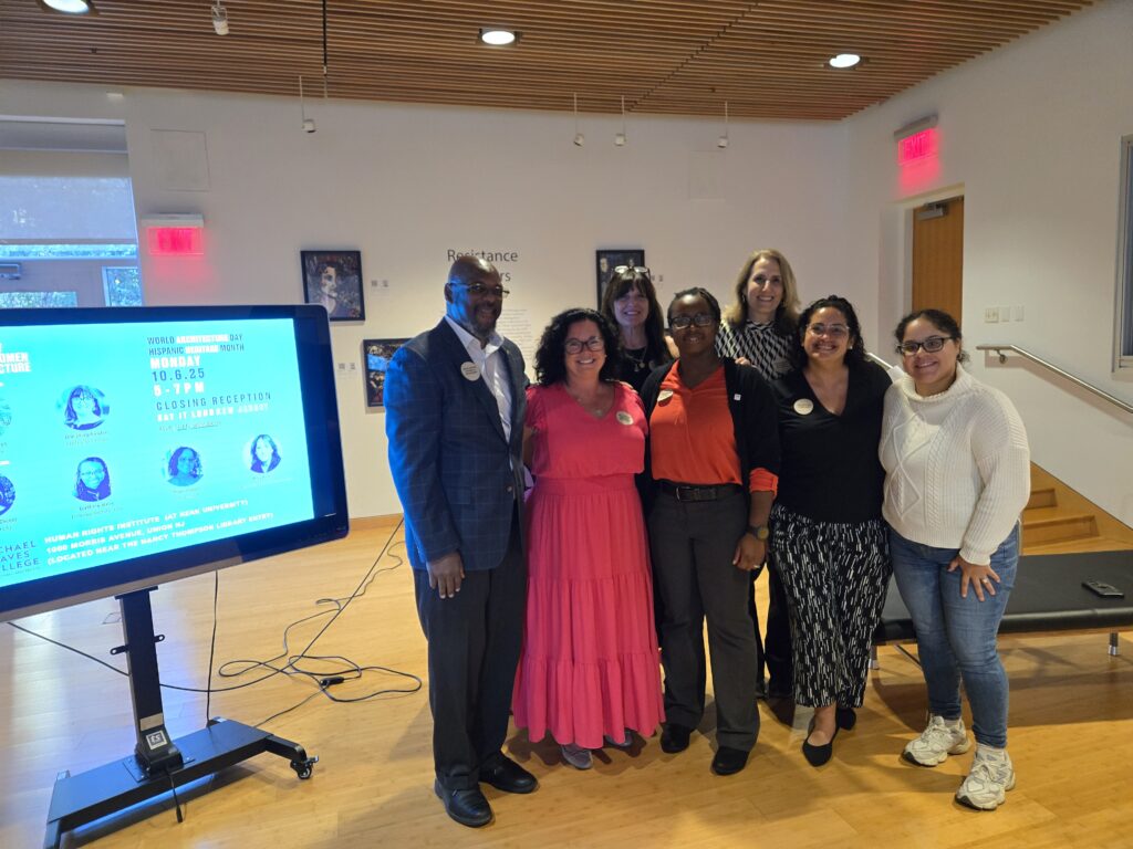 Colleagues gathered with students and faculty on World Architecture Day to recognize the closing of Pascale Sablan’s successful SAY IT LOUD exhibit. We also celebrated the kick-off of Hispanic Heritage Month, honoring the professional contributions of Hispanic women and other underrepresented professionals in architecture. AIA New Jersey EDI and WIA sponsored this free celebration, open to all.
