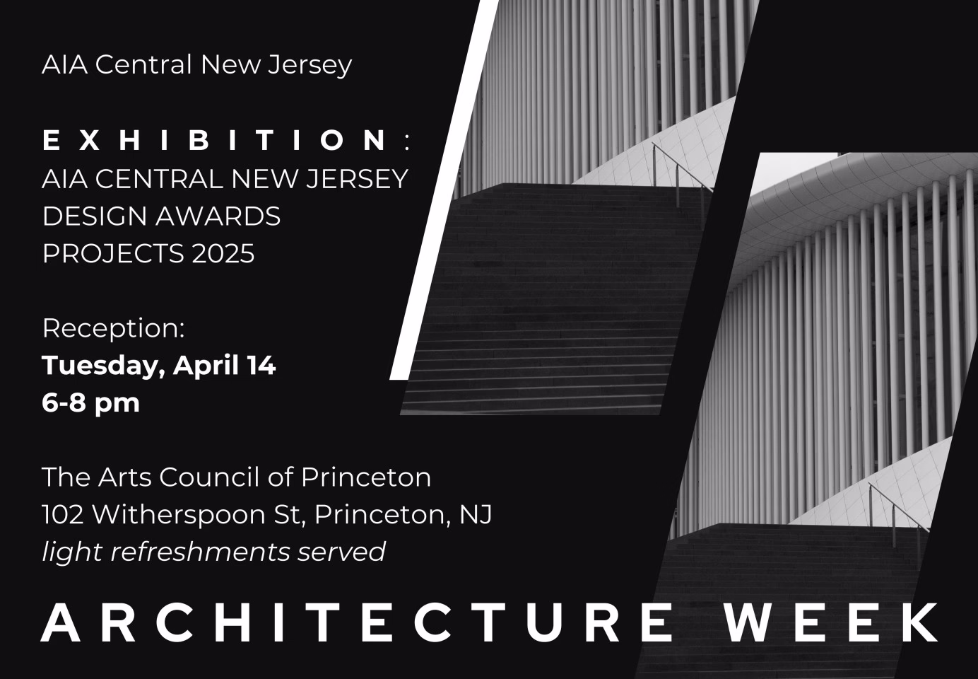 April 12–18, 2026, marks Architecture Week across the state of New Jersey, and AIA Central New Jersey is excited to celebrate with a special exhibition featuring the 2025 AIA CNJ Design Awards project submissions.