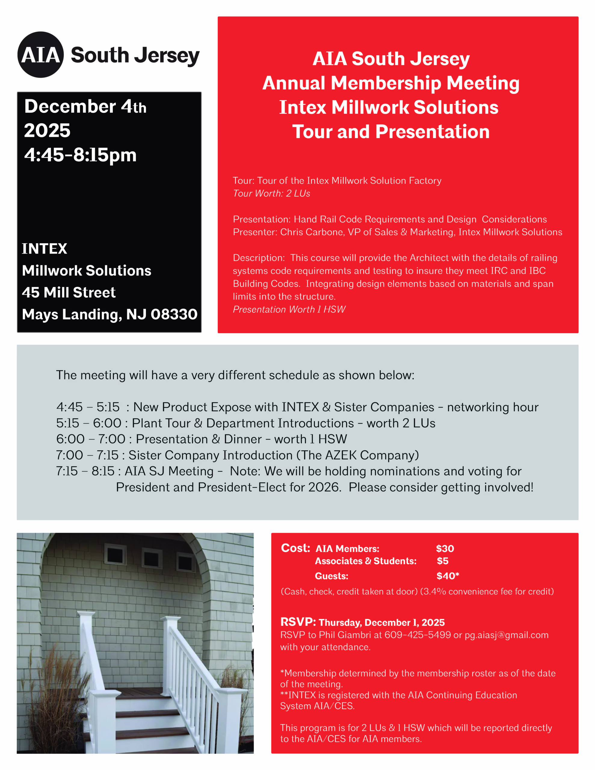 7:15 – 8:15: AIA SJ Meeting – Note: We will be holding nominations and voting for President and President-Elect for 2026. Please consider getting involved!